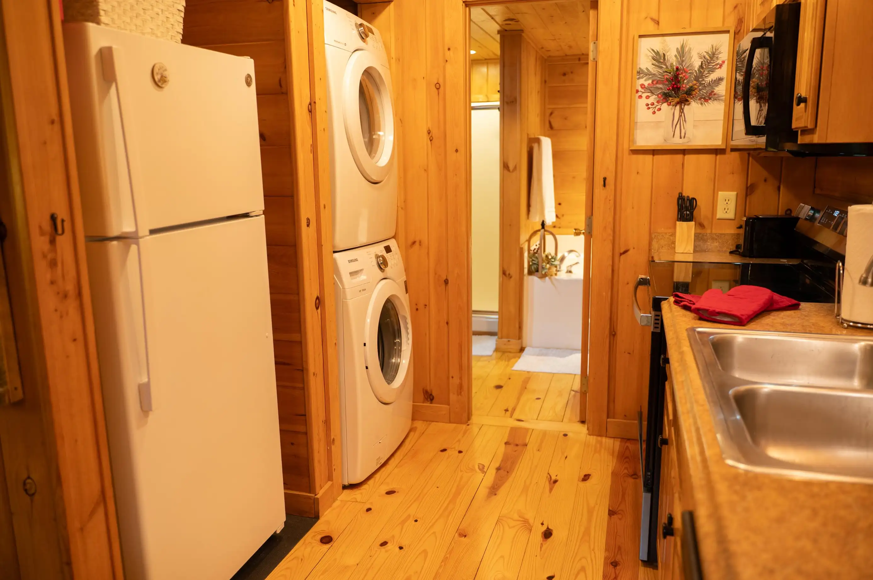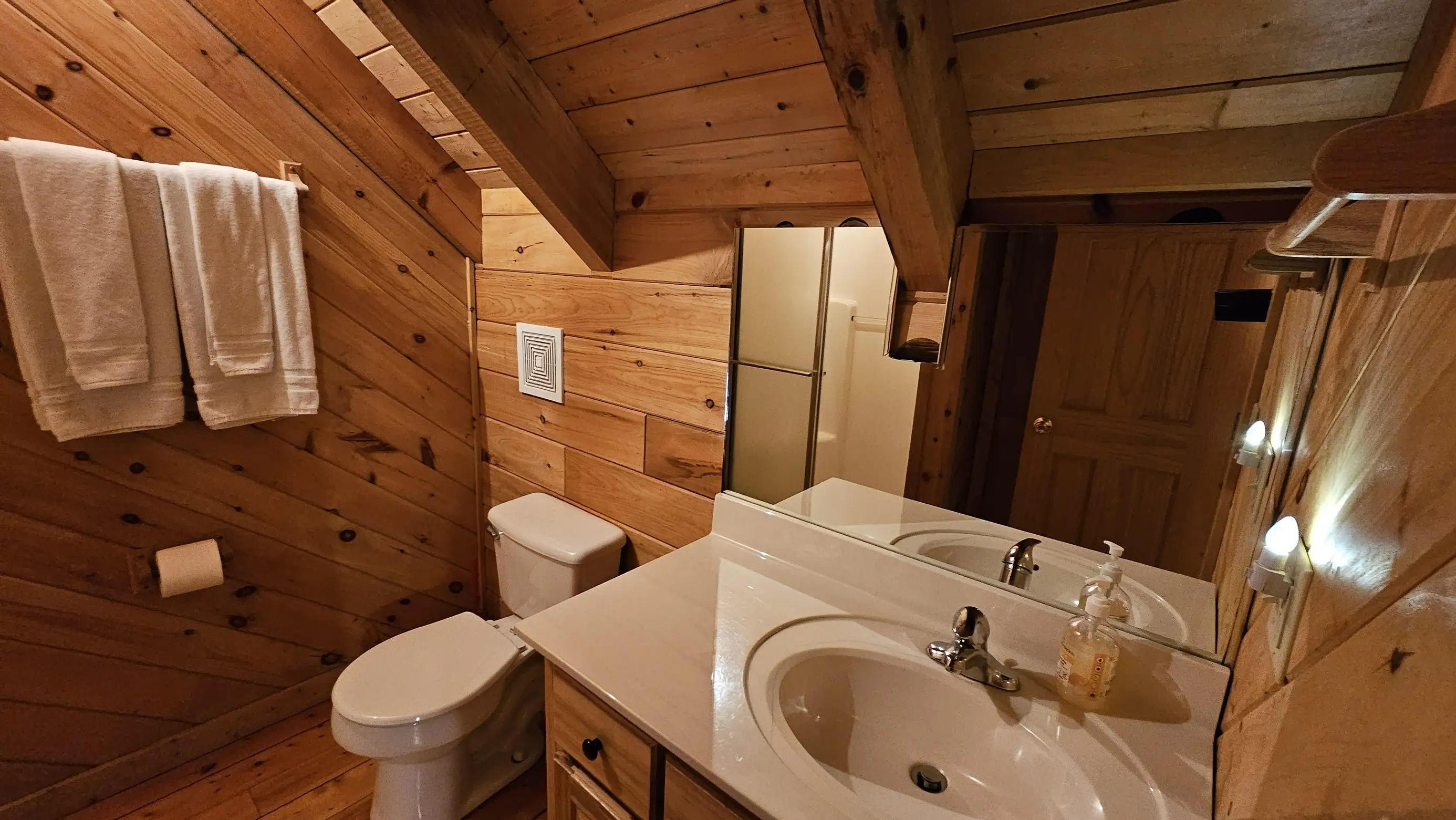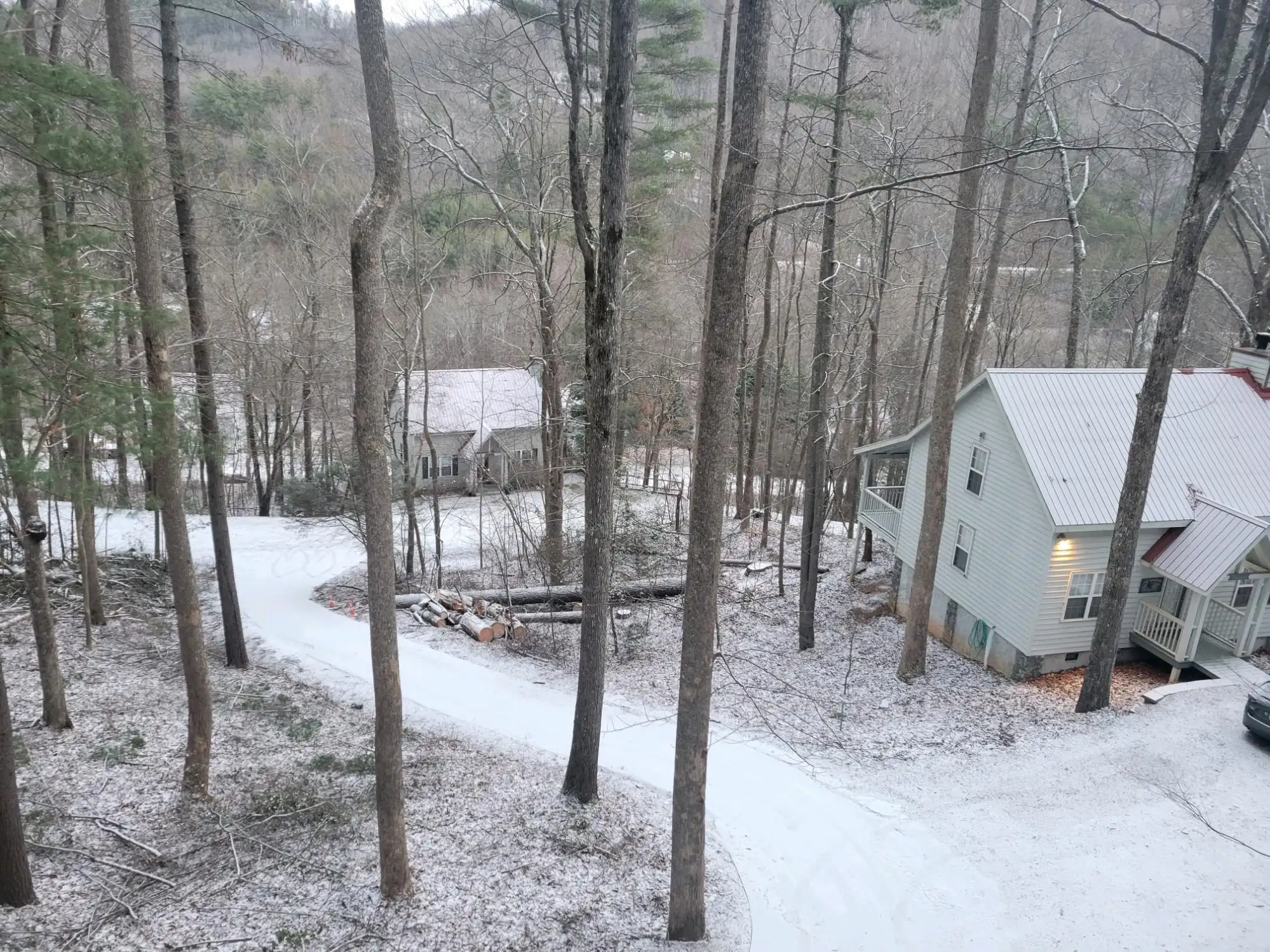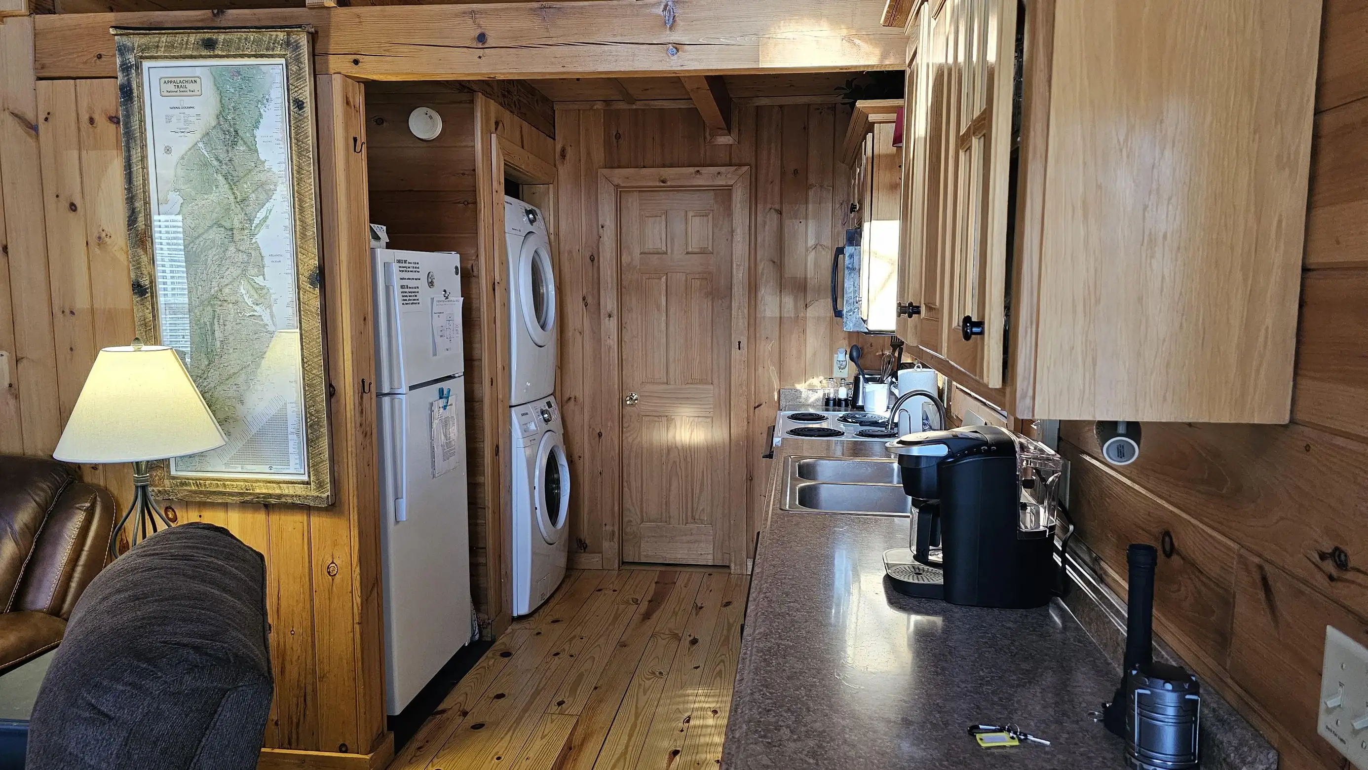 King size Bed down, Queen Bed up, and sleeper sofa in den. No steps on front porch to enter the cabin.